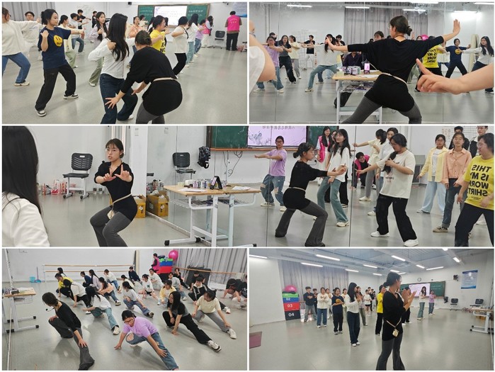 活动现场,志愿者团队以“弘扬传统体育文化,践行雷锋奉献精神”为主题,创新采用“三学联动”教学模式。王晓雯同学带领志愿团队通过“理论讲学”系统阐释八段锦的养生智慧,结合教学视频演示解析“摇头摆尾去心火”的中医原理;在“动作教学”环节,采用“镜面示范+分组指导”方式,重点纠正“调理脾胃须单举”的发力技巧;“互助促学”环节中,志愿者与学员结对练习,现场演示“穴位按摩+拉伸放松”的辅助疗法。传统体育文化作为中华文明的重要载体,同学们以专业特长服务师生,正是对雷锋精神的创新性传承。本次活动将专业教育与志愿服务深度融合,既锻炼了学生实践能力,又切实解决了师生健康需求。