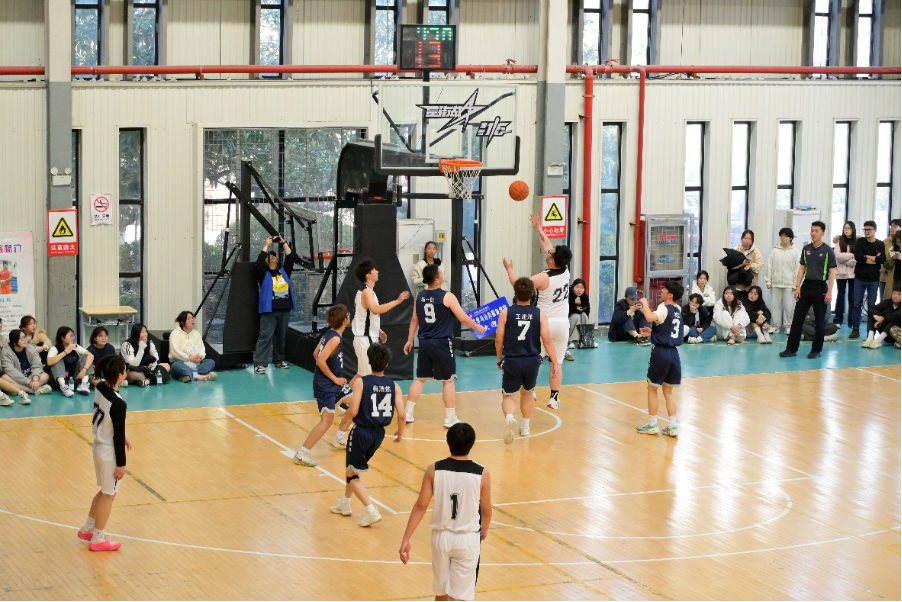 开幕式结束后的揭幕战,由人文学院2023级男子篮球队对战信软学院24级男子篮球队,学校党委副书记、副校长徐子良教授为本场比赛开球。