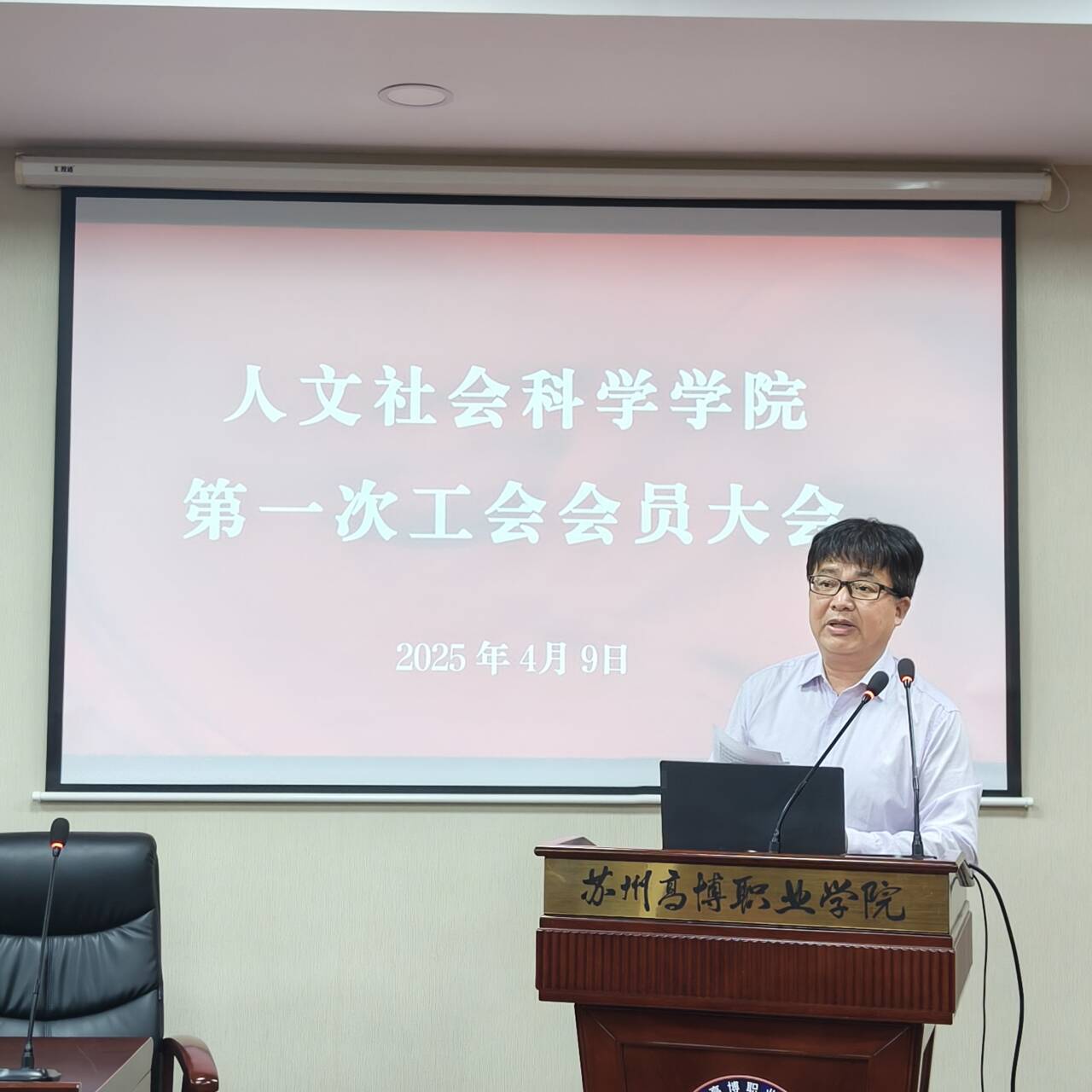 4月9日下午,人文社会科学学院分工会第一届会员大会在行政楼215会议室召开,人文社会科学学院分工会全体会员参会,院长黄兴、院党总支书记吴建明列席会议,党总支副书记崔红梅主持选举大会。