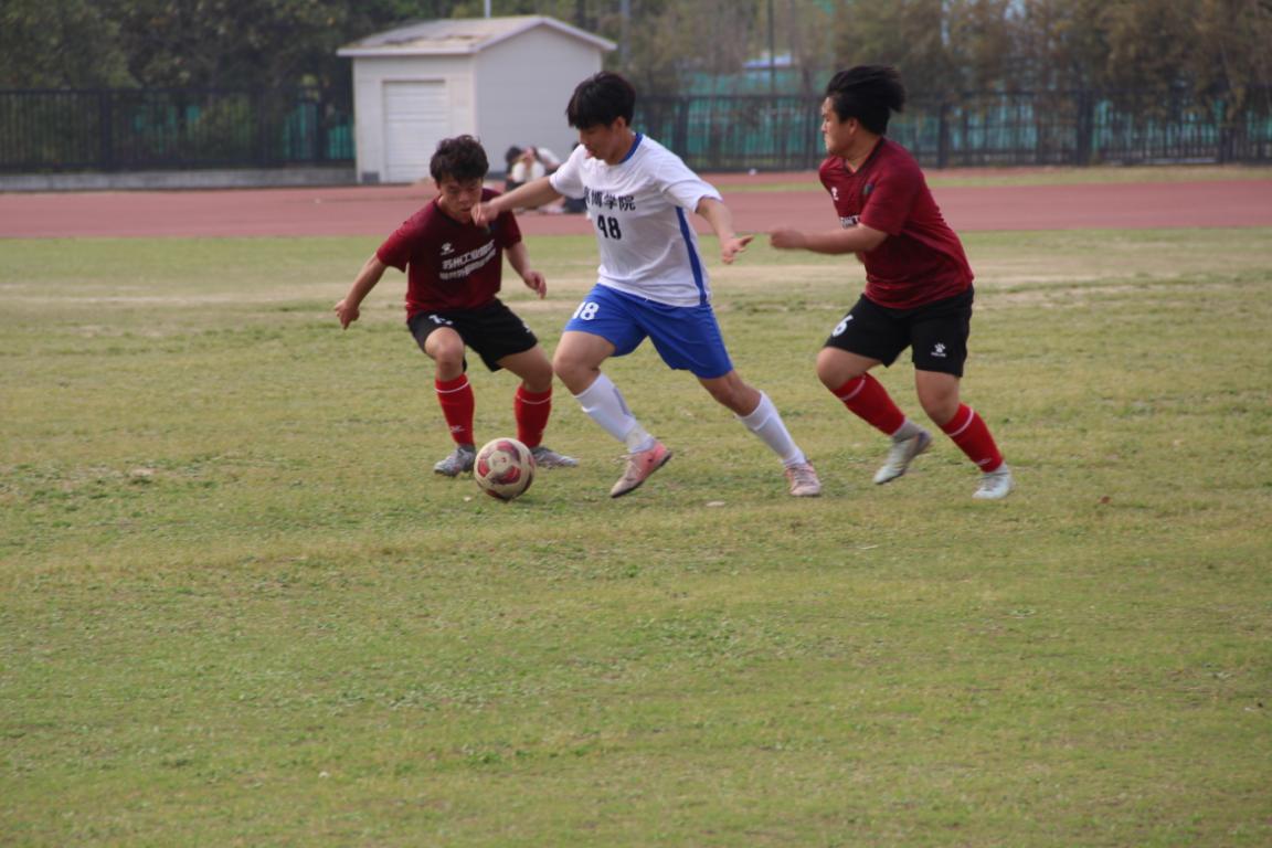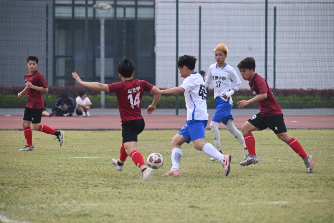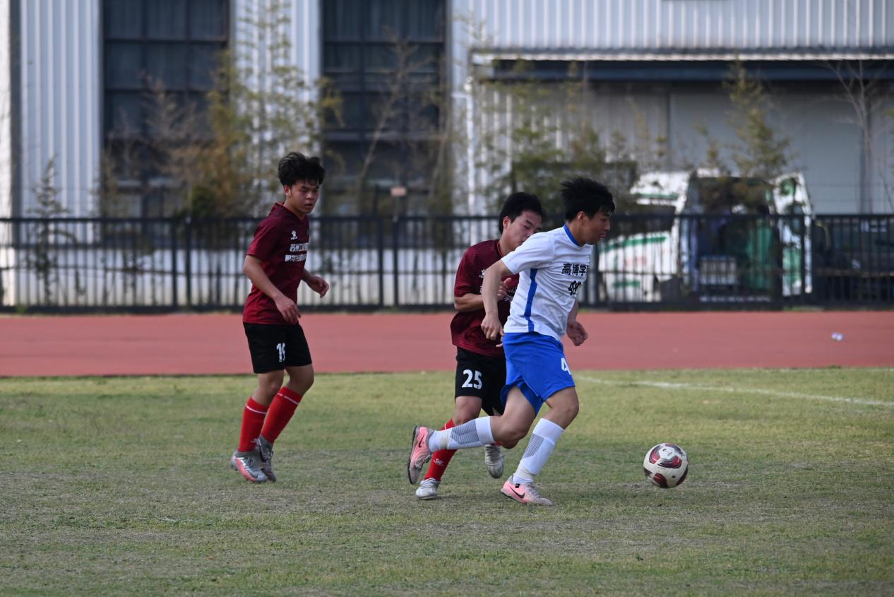 4月10日,苏州市第二届大学生足球联赛甲级组第六轮展开激烈争夺。苏州高博职业学院坐镇主场迎战苏州工业园区服务外包职业学院,在校长助理兼人文学院院长黄兴等老师和同学的现场加油助威下,最终以3:1完成精彩逆转,凭借4胜2平积14分的战绩重返积分榜榜首。