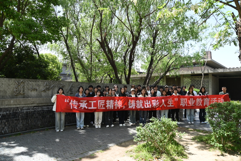第二站赴苏州御窑金砖博物馆开展了一堂生动的职业教育课。在讲解员的带领下,同学们看泥坯、访砖窑、查炉火、探展厅,全面了解制作金砖的传统工艺。在古法金砖制坯场地和烧窑现场,同学们就一些制砖技术问题和老师进行了深入讨论。工匠精神是中华优秀传统文化的重要内容和宝贵财富。苏州陆慕的御窑金砖是中国传统窑砖烧制业中的珍品,每一块金砖的制作,都是匠人们注入灵魂的过程和用匠心化土为“金”的体现,也反映了我国古代能工巧匠们不断追求技艺精进的工匠精神和品格。在参观学习的实践过程中,同学们感受中国古代文化的辉煌成就,领略精益求精的工匠精神,重新走入历史的长河,追寻古代匠人的足迹,激励青年学子走上技能成才、技能报国之路。