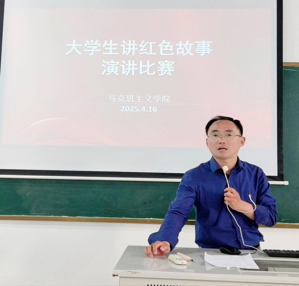 马克思主义学院院长吴歧范总结强调,学校历来重视思政课建设,此次“大学生讲红色故事”比赛得到学校党委的重视和校团委的支持,马克思主义学院精心制定具体方案,圆满地完成了本次活动。本次比赛,让我们共同见证了一场直击心灵的精神盛宴,同学们用青春视角解读红色精神,用创新形式激活历史记忆,展现了当代青年与革命先辈跨越时空的“对话”。希望全体同学以此次活动为契机,赓续红色血脉,将信仰之力转化为奋进之力,在学业中砥砺担当,在实践中锤炼品格,让革命精神在新时代焕发光芒。最后,吴院长寄语,希望所有同学都能以学、讲红色故事为路径,将理想信念转化为行动,真正成为有信仰、有担当的新时代大学生。