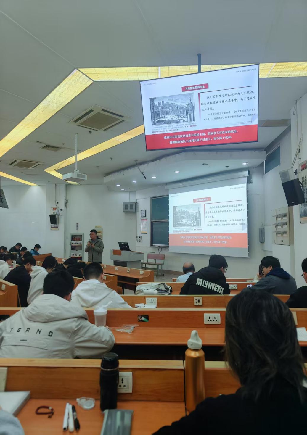 我校教师首先与苏大马院教授胡小君、吉启卫等一起观摩了苏大马院戴梦石和祁文博两位老师的公开课。戴梦石老师围绕 “社会主义现代化建设的教育、科技、人才战略”专题,深入浅出地讲授了“为什么要坚持教育、科技、人才一体推进”等有关内容。祁文博老师围绕“发展全过程人民民主”,坚持理论联系实际,讲授了“什么是全过程人民民主”等有关内容。两位老师采用案例式教学、启发式教学等方法调动了学生的积极性,增强了学生的获得感。教学效果良好,使我校教师受益匪浅。