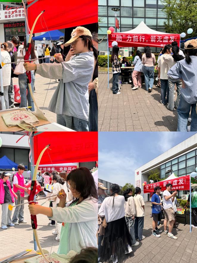4月9日,国际商学院在食堂前广场开展了“‘助’力前行,箭无虚发”互动活动,活动以新颖的弓箭打靶积分形式吸引了众多学生驻足。同学们手持弓箭,瞄准靶心,每一次拉弓射箭都伴随着紧张与期待。这种独特的体验不仅为校园生活增添了乐趣,更巧妙地将资助活动与趣味运动相结合,激发了学生对资助工作的热情与关注。活动现场欢声笑语不断,同学们在轻松的氛围中感受到了学校资助工作的温暖与贴心,为后期活动的开展奠定了良好的基础。