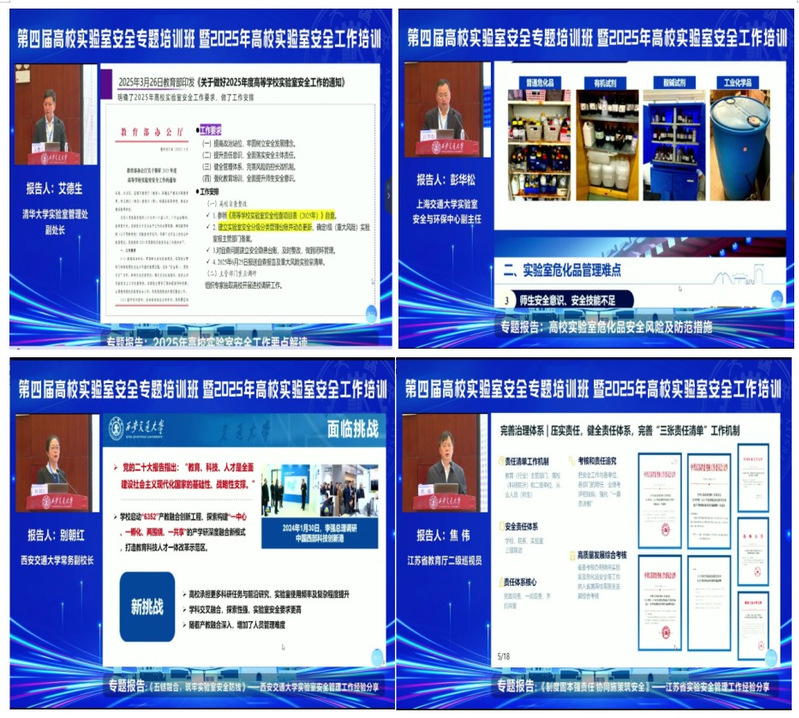 培训会上,教育部科技司一级巡视员张国辉部署了2025年实验室安全相关工作,并对本年度实验室安全重点工作进行解读。会议中听取了“2025年高校实验室安全工作要点解读”“高校实验室危化品安全风险及防范举措”“五链融合,筑牢实验室安全防线”“制度固本强责任 协同施策筑安全”等四场专题报告和经验分享。