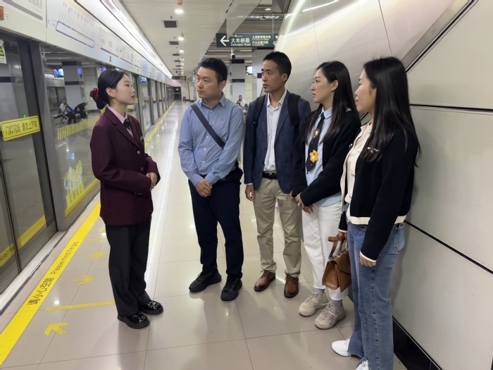 教师团队随后深入上海地铁鲁班站站厅、站台等实习岗位。在站厅,教师们仔细观察学生如何熟练地为乘客解答票务咨询、引导乘客进出站;在站台,看到学生严谨地执行列车到站安全检查、维持乘客上下车秩序等工作流程。教师们详细了解学生日常工作任务、技能培训安排及安全防护措施,并与企业导师就学生表现、岗位适应能力等进行交流。企业导师对苏州高博职业学院学生扎实的专业知识和良好的职业素养给予充分肯定,同时提出加强学生应急处置能力培养的建议,希望学生在面对突发客流、设备故障等情况时,能更迅速、有效地进行处理。