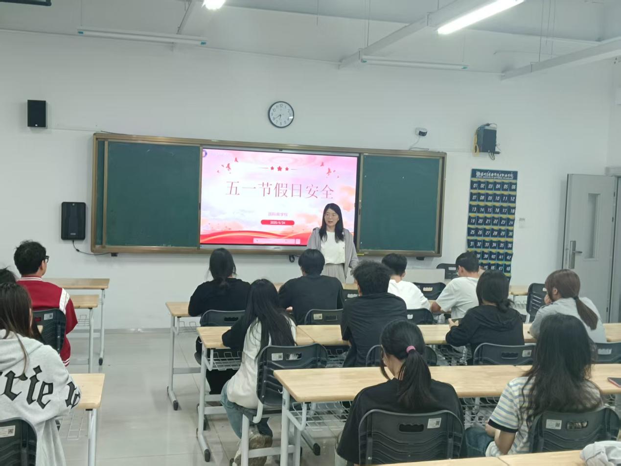 2025年4月24日晚,国际商学院分团委组织全体大一学生和运动员开展了“五一假期安全教育暨运动会安全教育”主题班会,旨在增强学生安全意识,确保假期与运动会期间的人身及财产安全。班会由各班级辅导员主持,全面普及安全知识,筑牢校园安全防线。
