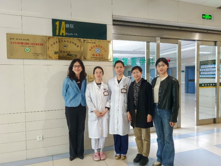 2025年4月22日,苏州高博学院医学院康复系主任尹宪明教授带领康复专业教师一行3人,赴苏州九龙医院康复医学科开展调研。此次调研旨在深化校院合作,了解康复医学科临床实习管理现状,优化人才培养模式,并探讨康复医学科发展的前沿方向。调研团队首先参观了九龙医院康复医学科的功能区域,包括物理治疗室、作业治疗室及言语治疗室等。科室李希茜中级治疗师介绍,康复科以“全周期康复”为核心理念,配备了国内外先进的康复设备,如功能性电刺激仪等。实习生在此可系统学习运动功能评估、神经康复、产后康复、体态评估训练等技术,并通过个性化康复方案提升患者生活质量。