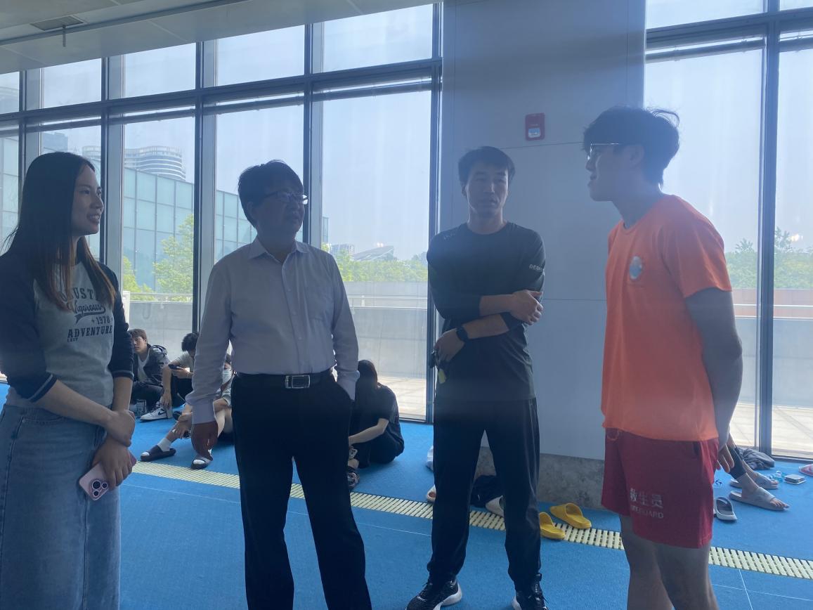 在走访过程中,吴建明一行与游泳馆负责人进行了深入交流,详细了解学生的实习表现及岗位适应情况。据悉,人文社会科学学院休闲体育专业部分学生已考取游泳教练证、救生员证等职业资格证书,并在游泳馆担任教练或救生员工作,将课堂所学知识充分运用于实践。此外,部分学生也在专业教师的带领下,参与游泳课程的学习与训练,进一步提升自身技能水平。