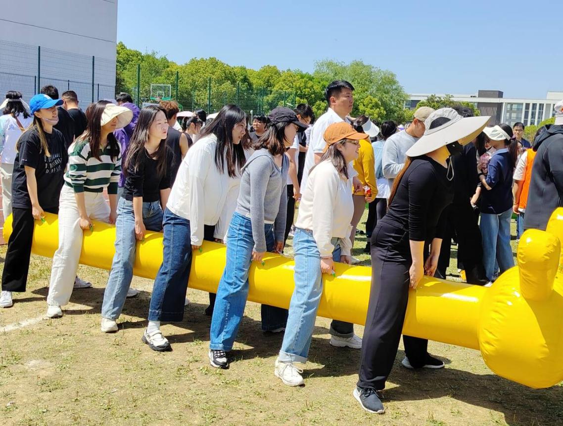 在团队项目中,我院教职工充分彰显了团队组织协调能力与团队凝聚力。在竞争激烈的拔河比赛中,教工队团队凭借默契配合与顽强毅力一路过关斩将,最终力压群雄夺得冠军;抛接沙包团体赛中,队员们团结协作、稳中求胜,斩获第二名;毛毛虫协作比赛中,我院女教师,齐心协力,喊着整齐的口号,迈着统一的步伐冲向终点,巾帼不让须眉,获得第三名。赛场边,我院学生拉拉队摇旗呐喊,师生同心为荣誉而战的场景成为动人画面。