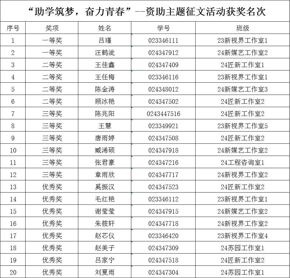 征文活动历时两周,活动得到全院学生的积极响应,共收到投稿作品近100篇。同学们用真挚的语言、细腻的笔触,记录了从迷茫到坚定的心路历程,展现了逆境中拼搏向上的精神风貌。经过层层筛选,评选出一等奖两名、二等奖四名、三等奖六名,同时评选出优秀作品奖八名。(图2、图3)