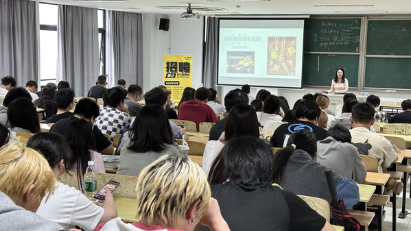 随后,老铺黄金股份有限公司的宣讲代表以“高端奢侈珠宝品牌——黄金中的爱马仕” 为主题,详细介绍了企业的发展历程、品牌简史、市场现状以及未来趋势。针对学生关心的就业问题,企业代表鼓励学生积极投身黄金行业,抓住行业发展带来的机遇。并推出了珠宝销售顾问等热门岗位,同时对岗位招聘要求、职业发展前景、行业薪资待遇等信息进行了讲解。