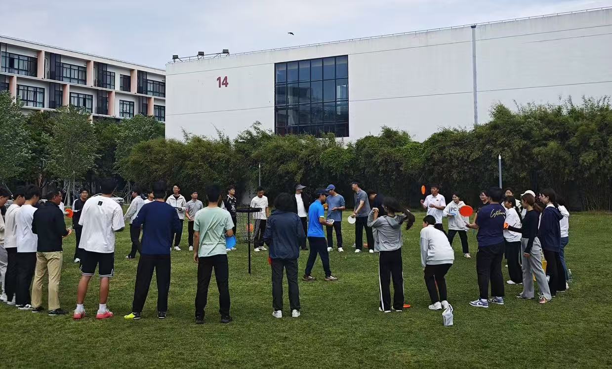 实操环节分为两组:一组聚焦团队飞盘,学习反手传盘、三种高度接盘技巧及跑动接盘,模拟比赛场景融入十项基本规则,最终通过实战PK巩固技能;另一组则进行掷准飞盘敲杆训练,教练从握盘方式、站位要素到投掷技巧逐一讲解,通过纵排和围圈淘汰赛及40米推进练习,让学员在趣味竞技中掌握技巧,体验远距离投掷的乐趣。