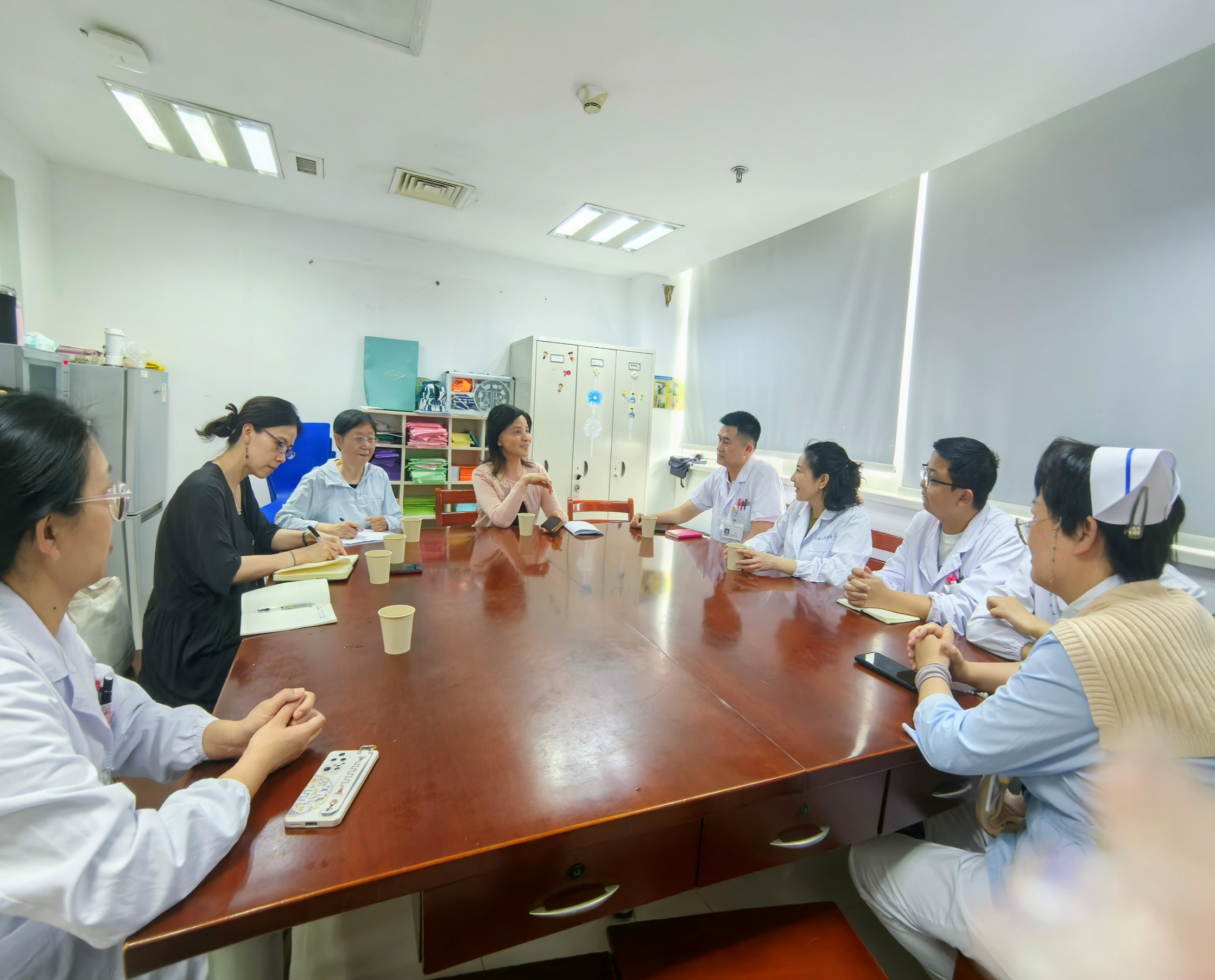 调研活动在苏州市中医医院康复医学科张国栋主任带领下参观康复医学的科室功能分区(门诊、病房及治疗室三大区域),涵盖物理治疗(PT)、作业治疗(OT)、言语治疗(ST)等现代康复模块,并融合中医特色的综合治疗室区等。张主任介绍,科室以“全周期康复”为核心理念,配备功能性电刺激仪、MOTOmed肌力训练器等先进设备,结合中医正骨、针灸、针刀等传统技术,为患者提供中西医协同的个性化康复方案。目前科室重点开展运动康复、骨科术后恢复、中风康复、疼痛管理及亚健康调理等项目,此外,计划于下半年于吴中区开展新的康复病区工作,可同时作为实习点。同时,学院章院长介绍了高博医学院发展历程和目前医学院专业开设和实践教学情况。