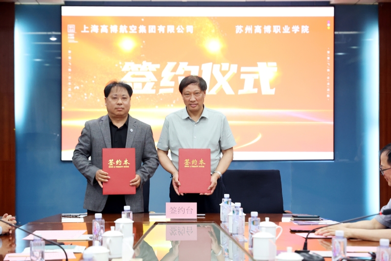 5月16日下午,学校与上海高博航空集团有限公司校企合作签约仪式在实训楼二楼会议室隆重举行。上海高博航空集团有限公司董事长林卫国、董事兼总经理朱爱民等企业高管;政协上海市第十三届委员会委员、原民航华东管理局局长蒋怀宇,上海市低空经济专委会主任、原民航华东管理局副局长朱州龙;江苏吴中集团有限公司董事会领导、学校理事长葛健,总裁助理兼苏州教育投资有限公司总经理朱磊;校党委书记薛辉,常务副校长张建初,副书记、副校长徐子良,副校长邹学海、副校长盛惠良等校领导班子成员,机电工程学院及相关部门负责人共同出席签约仪式,见证这一重要时刻。此次签约标志着双方在人才培养、技术创新、实训基地共建等领域达成深度合作,共同探索低空经济背景下高素质技术技能型人才的培养新模式。
