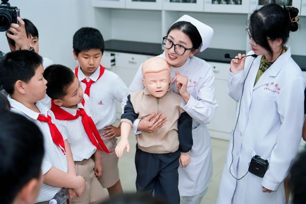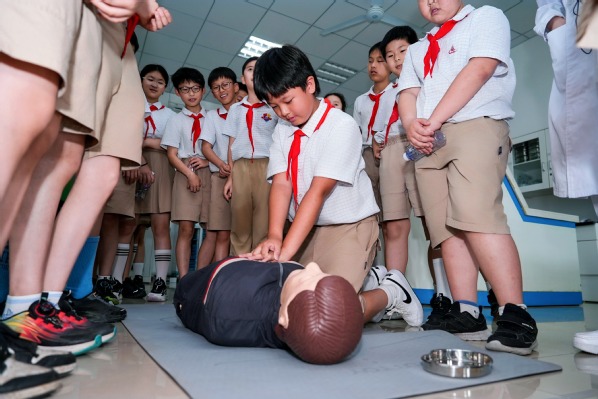 医学院护理实训室里,一场紧张而又充满意义的急救知识小课堂正在进行。专业老师借助模拟教具,深入浅出地讲解心肺复苏(CPR)及海姆立克急救法的要点,“按压频率要记住‘100-120次/分钟’,黄金救援时间只有4-6分钟!”同学们围在教具旁,目不转睛地看着老师的演示,随后分组进行实操练习。当同学们按照“按压频率口诀”正确完成模拟急救操作时,脸上露出了自豪的笑容,“生命守护者”的职业责任感在心中油然而生。