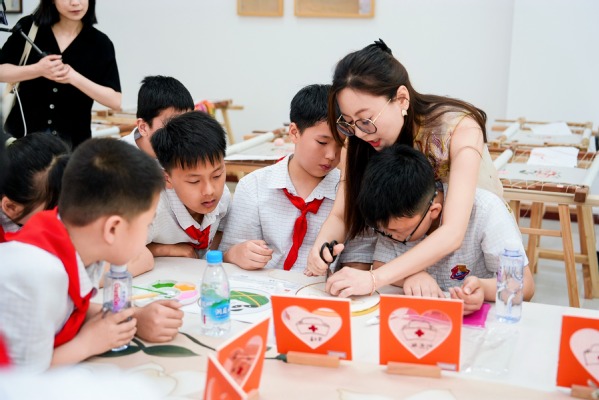 在非遗景泰蓝画体验环节,同学们迎来了一场穿越时空的文化之旅。在婴幼儿托育服务与管理专业老师的指导下,大家分组协作,小心翼翼地完成点蓝、填色等精细工序。金属丝勾勒出的精美纹路与五彩斑斓的釉料相互映衬,一幅端午主题的景泰蓝画逐渐成型。同学们屏息凝神,专注于指尖的创作,传统工艺的细腻美学与职业体验完美融合,在一涂一抹中,实现了“手艺传承”与“创新实践”的双向赋能,古老的非遗文化在新时代的少年手中焕发出新的光彩。