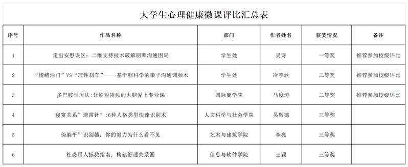 为深入贯彻落实立德树人根本任务,进一步提升心理健康教育实效,促进教师教学能力发展,根据学校教务处《关于举办2025年校级微课教学比赛的通知》要求,学生健康教育中心于5月16日上午举办了大学生心理健康教育微课教学比赛。