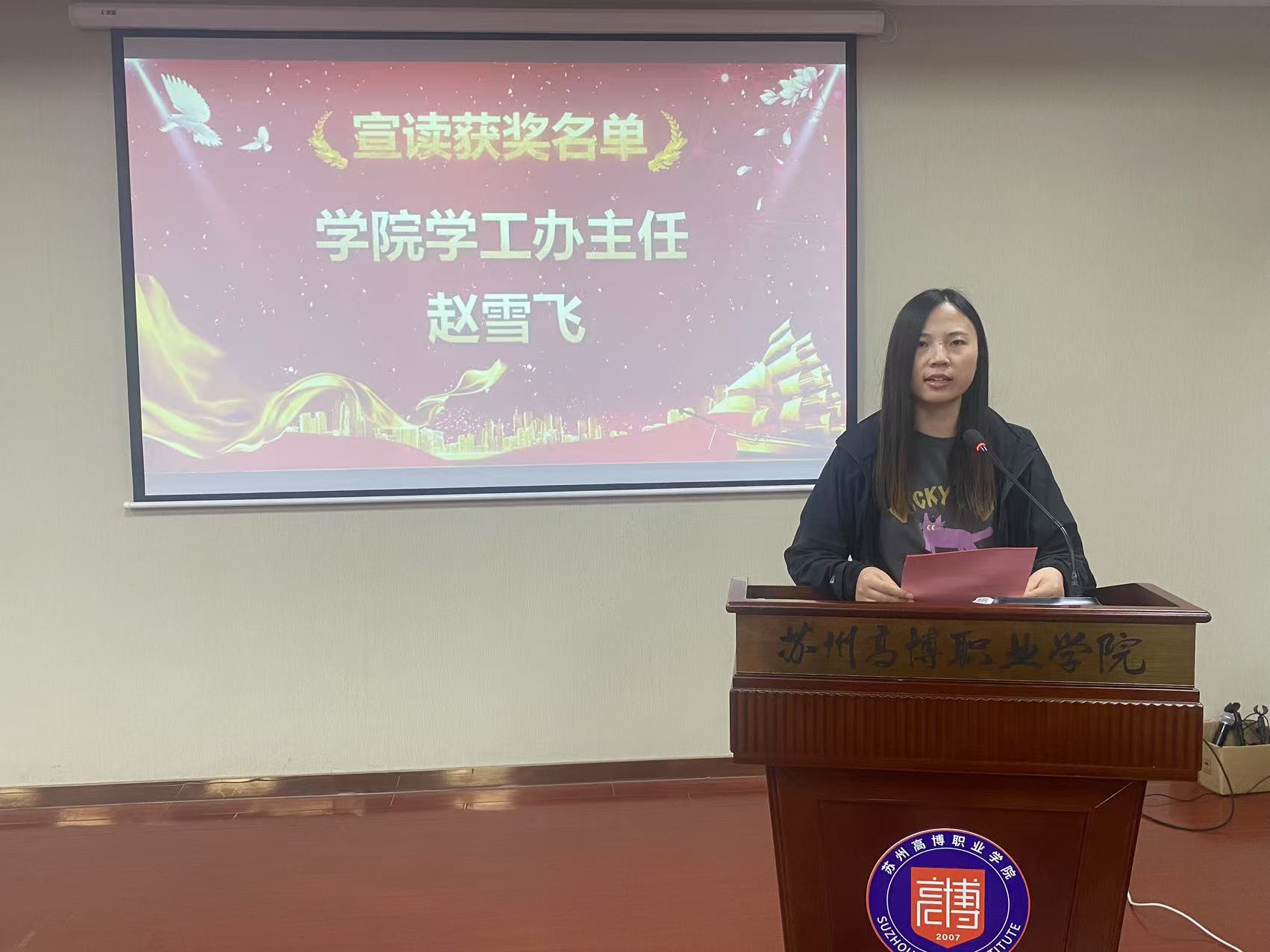 学工办主任赵雪飞宣读“五四红旗团支部”“先进团支部”“优秀共青团员”和“优秀大学生志愿者”荣誉名单时,现场掌声雷动。这些受到表彰的集体和个人,是学院青年群体中的杰出代表。他们以实际行动诠释五四精神,在知识的海洋中追求卓越,在工作岗位上勇挑重担,在日常生活里热心服务他人。