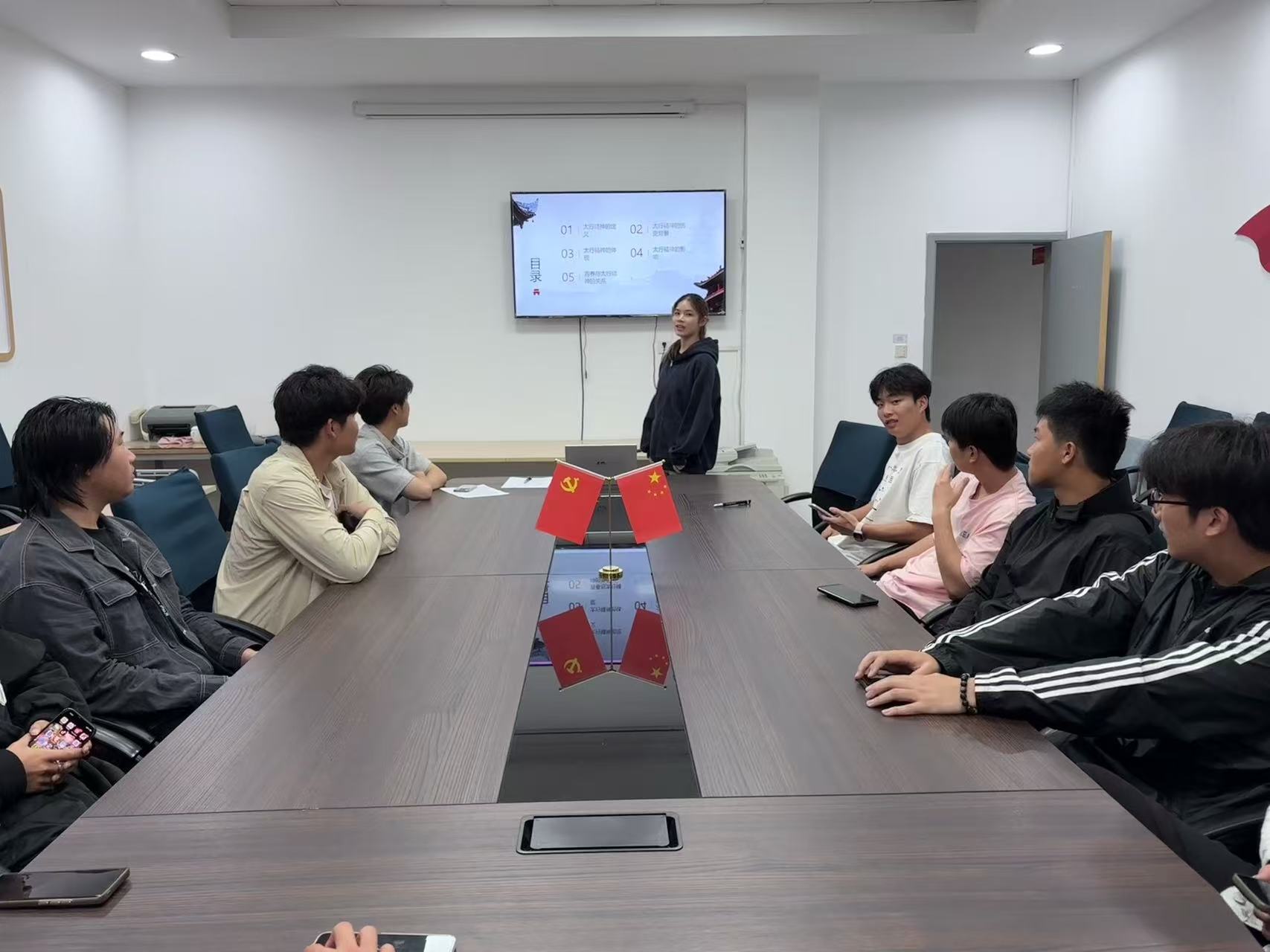 为深入贯彻落实红色文化教育,筑牢精神信仰之基,5月18日,人文社会科学学院梁惠喜同学在14-234教室,以一堂别开生面的主题公开课,开启了一场跨越时空的精神对话。这场以“传承太行精神,赓续红色血脉”为主题的活动,采用沉浸式班会形式,深度挖掘太行精神的深刻内涵,带领同学们与革命先辈展开思想碰撞,从历史长河中汲取砥砺前行的磅礴力量。