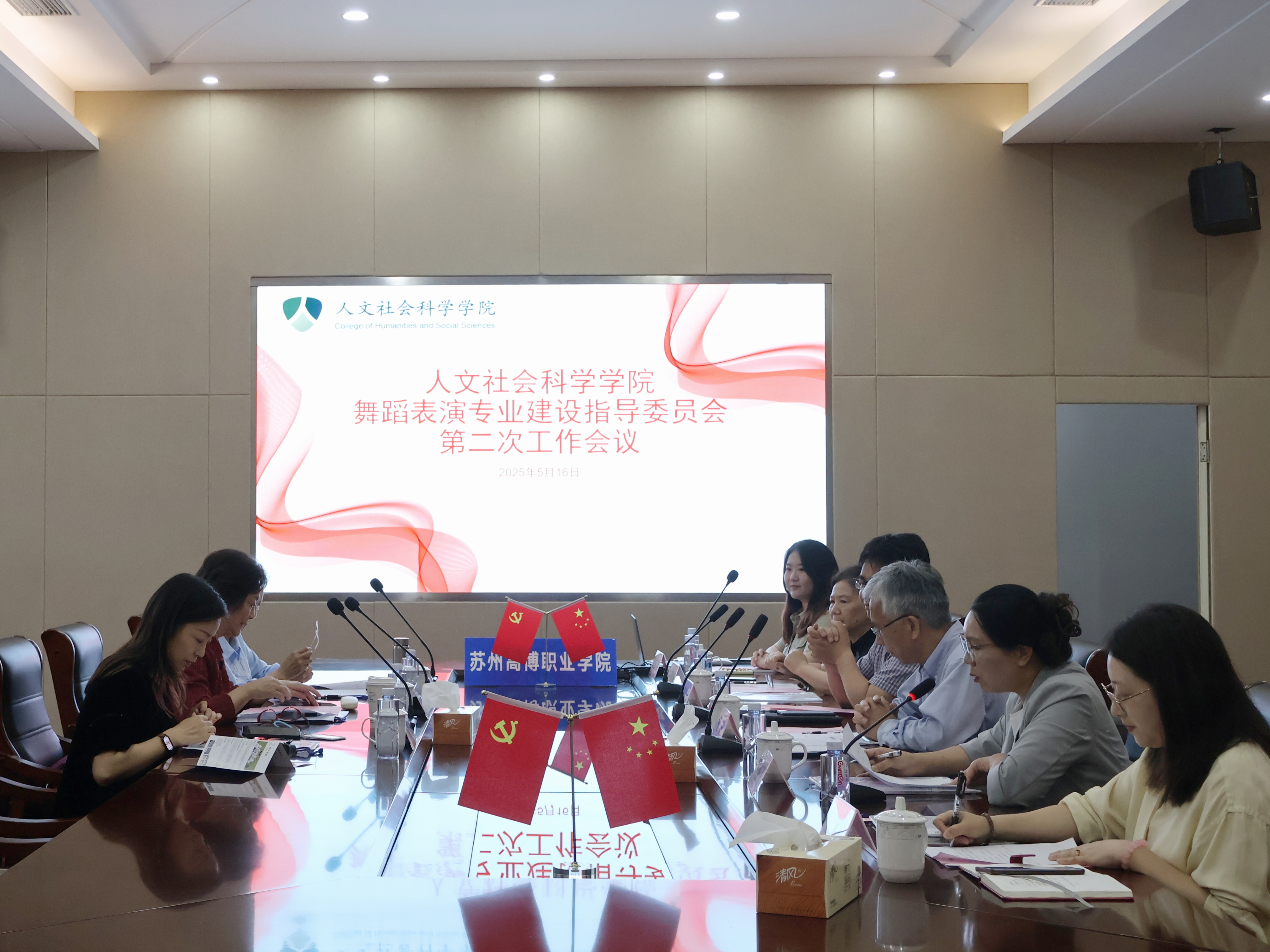 为进一步修订完善我校舞蹈表演专业人才培养方案,促进舞蹈表演专业建设与发展,更好地培养适应社会发展需要的高素质舞蹈表演专业技术技能人才,5月16日下午,人文社会科学学院在行政楼会议室召开了舞蹈表演专业建设指导委员会第二次工作会议。舞蹈表演专业建设指导委员会全体委员,我校校长助理兼人文学院院长黄兴,校长助理兼人文学院党总支书记吴建明,人文学院副院长马亚丽,特聘教授洪庆福以及舞蹈教研室全体教师参加了会议。会议由马亚丽主持。