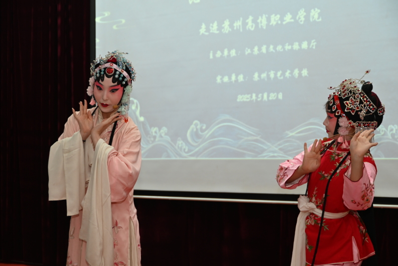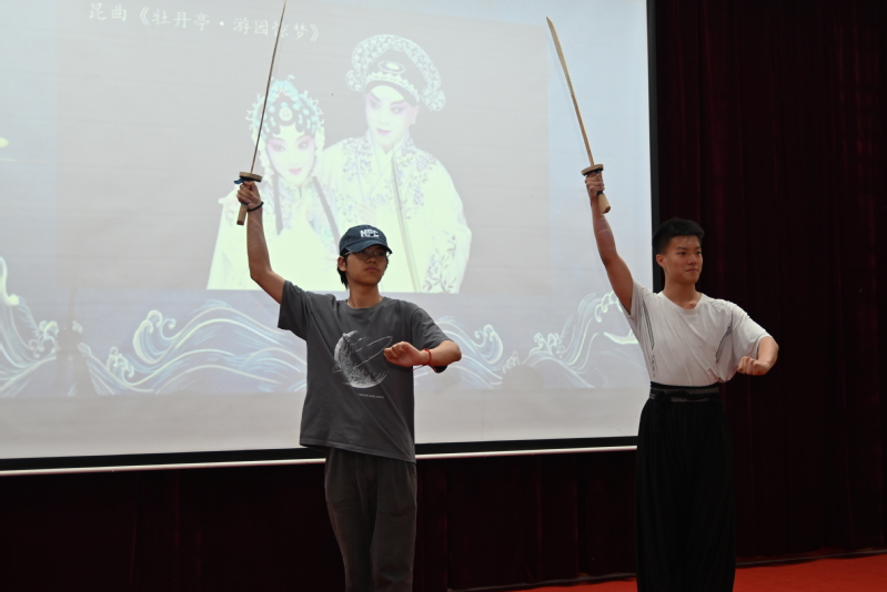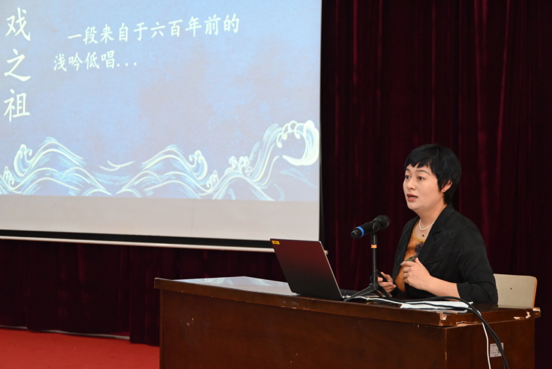 活动中,国家二级演员常小飞老师以“百戏之祖”昆曲的历史脉络为切入点,结合“生旦净末丑”的行当解析与“唱念做打”的技艺阐释,让师生直观感受昆曲“清柔婉转”的艺术特质,深入浅出地展示了中国传统戏曲的独特魅力和深厚的文化底蕴,让在场师生直观感受到传统戏曲的“现代生命力”。