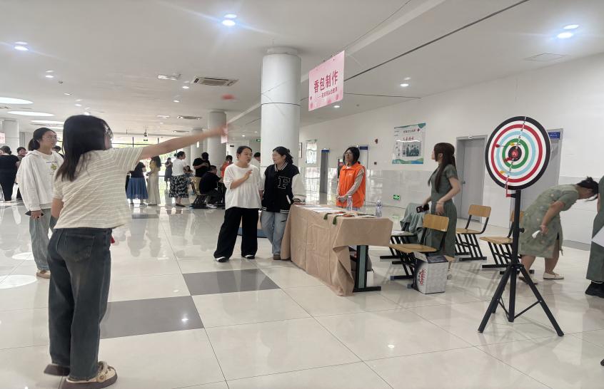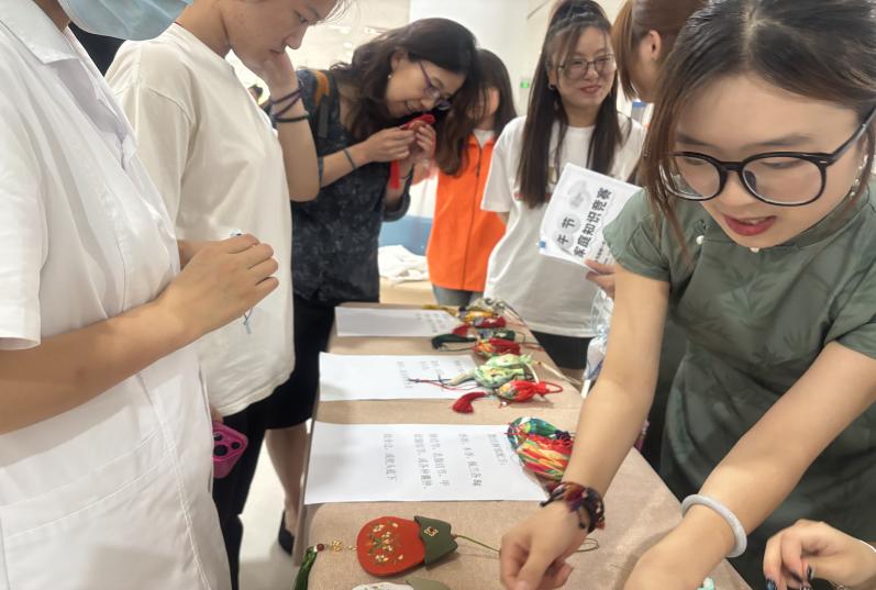活动现场嘉宾云集,苏州高博职业学院医学院的领导也亲临现场指导,对本活动环节予以充分肯定与鼓励。游戏比拼环节中,师生们热情高涨,趣答端午节常识、香包文化诗词赢取香囊。现如今,香囊不仅可以佩戴在身,其还可以放置于背包内、悬挂在车内、摆放在办公桌上,寓意着吉祥、宁静,和人们追求幸福生活的决心。