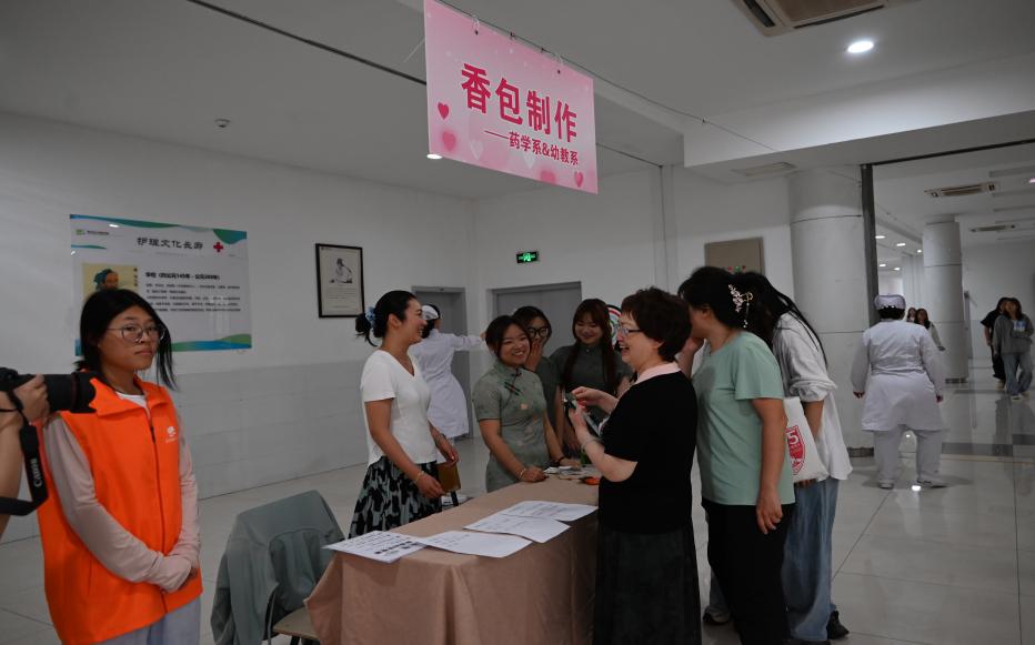 “5·12护士节系列活动”是为积极履行“十四五国民健康规划”中的倡议与要求,贯彻实施党的十九大提出的“健康中国战略”,由高博职业学院·医学院各系部共同筹划、组织的健康系列活动。而作为此次活动中的亮点,药学系与幼教系联合策展的“香囊制作项目”刚一开展就受到了大量围观。本项目分为制作体验、学生刺绣、精品展出与游戏比拼四个环节,师生们可以通过亲自参与香囊制作,体验古人“暗香盈袖”的馨雅情致。