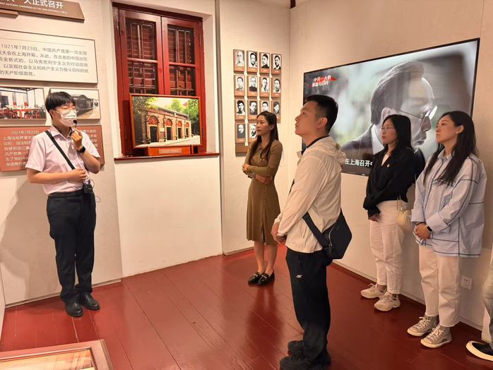 瞻仰红色起点 叩问建党初心。在中共一大纪念馆,党支部书记韩丽东带领大家,面对庄严的党旗,重温入党誓词,铿锵有力的宣誓声,是对初心的坚守,也是红色血脉的延续。随后,大家庄严宣誓瞻仰了中共一大代表群像浮雕,参观了“历史选择、伟大起点”、“前仆后继、救亡图存”、“民众觉醒、主义抉择”等专题展区,详细了解了中国共产党为挽救国家和民族危亡进行的英勇斗争和艰苦探索。