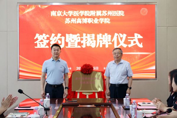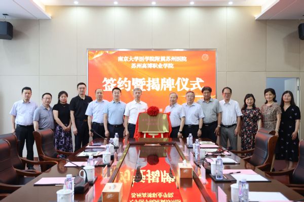 6月5日下午,学校与南京大学医学院附属苏州医院签约暨揭牌仪式在学校行政楼会议室隆重举行。医院党委书记孔杰峰,党委副书记、院长李敬伟,院长助理张太泉,院长助理顾君等。校党委书记薛辉,副书记、副校长徐子良,副校长邹学海、副校长盛惠良,医学院党总支书记、院长孙小娅等相关负责人共同出席仪式。仪式由副校长盛惠良主持。