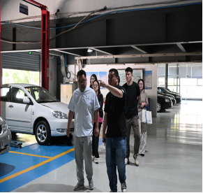 交流团在汽车学院党总支书记吴艳国的带领下,首先参观了学院的校企合作实训基地,基地内先进的教学设备、真实的企业化实训场景,以及产教融合的教学模式,给参观人员留下了深刻印象。随后,交流团走进学生宿舍和活动室,深入了解学生的日常生活与课余活动情况,感受校园文化氛围,双方就学生生活管理、宿舍文化建设等方面进行了简单交流。