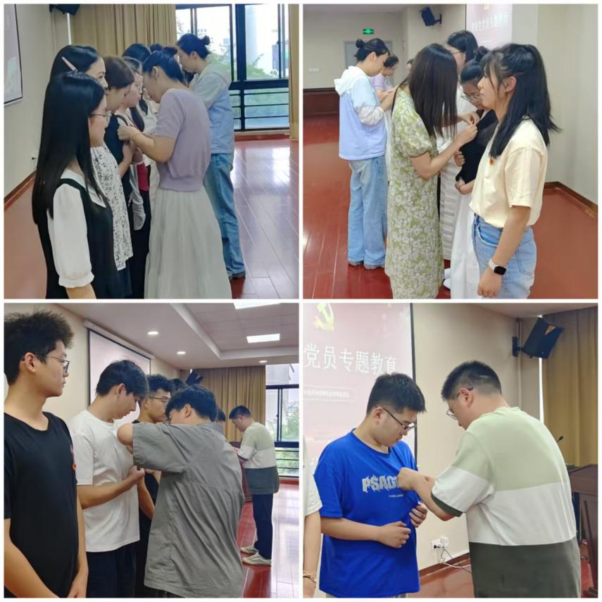 活动在庄严的党徽佩戴仪式中拉开帷幕,各学院学生党支部书记为毕业生党员逐一佩戴党徽。熠熠生辉的党徽不仅是党员身份的象征,更承载着党组织的殷切嘱托。一枚党徽就是一份责任,希望他们未来始终以党员标准严格要求自己,让青春在党和人民最需要的地方绽放绚丽之花。