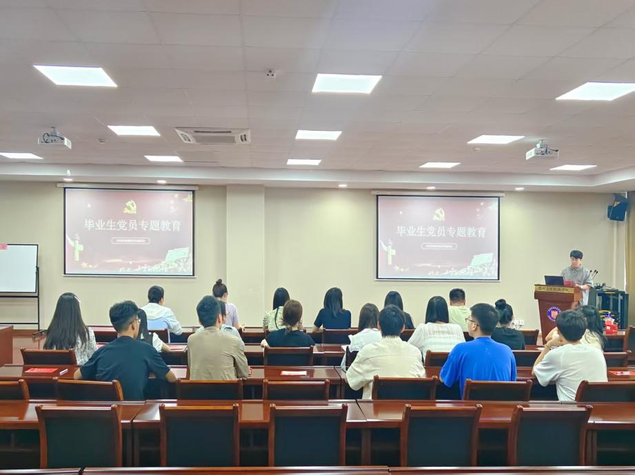 国际商学院党总支副书记张志豪同志以《回顾入党初心,强化党性修养》为题讲授专题党课。他结合实际案例,从“牢记初心使命”、“规范关系转接”、“坚持终身学习”、“立足岗位建功”等方面展开阐述,号召毕业生党员在未来的职场中争当先锋表率。党课引发热烈反响,毕业生党员纷纷感慨:“这既是一次思想洗礼,更是奔赴社会的行前动员。”