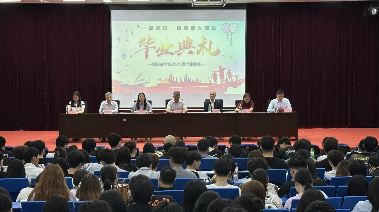 栀子花开,盛夏蝉鸣。6月12日下午,国际商学院2025届毕业典礼在学校报告厅举行。学院党总支书记王则斌教授、院长乔桂明教授及党政领导班子成员、全体辅导员、2025届毕业生齐聚一堂,共同见证这一青春与梦想交织的高光时刻。典礼由学院党总支副书记张志豪主持。