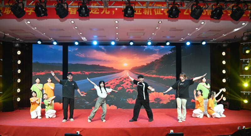 第一篇章《大学:博学笃志·神采飞扬》精彩纷呈。群舞《大学之道》用行云流水的舞姿演绎“格物致知”的求学之道,折扇翻转间尽显传统文化与学术精神的融合;现代舞《绽放梦想》以动感编舞搭配霓虹光影,展现学子追逐理想的鲜活图景;青春歌曲串烧涵盖《改变自己》《遇见》《稻香》等五首金曲,从自我突破的呐喊到校园情愫的细腻描摹,台下毕业生随旋律轻摇荧光棒并跟随合唱;爵士舞《whiplash》以急促的鼓点与利落的肢体律动,诠释青年在压力与挑战中迸发的生命力。