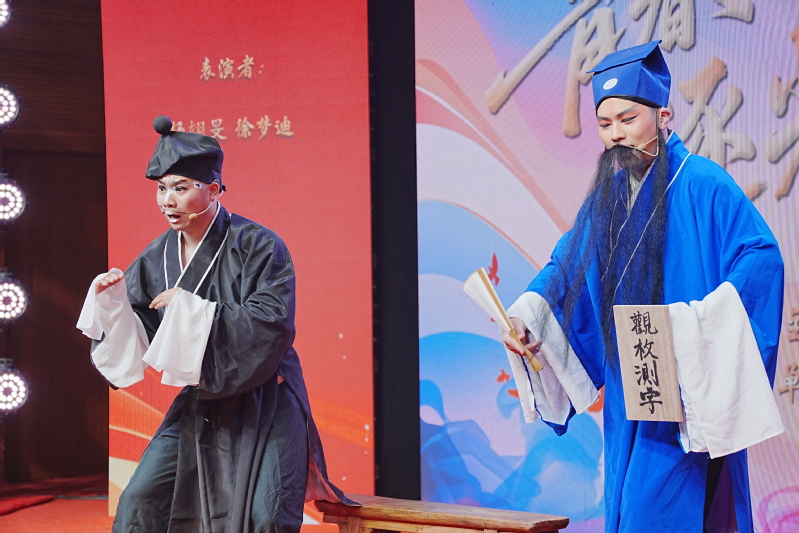第二篇章《启航:鸿鹄展翅·奋楫逐光》带来别样精彩。情景歌舞《文学里的青春》别具匠心,将经典文学作品中的青春元素与现代歌舞巧妙融合,在诗词朗诵与动感舞蹈的交织中,展现出跨越时空的青春力量;古典舞《唐印》仿佛将观众带入盛世大唐,舞者们妆容精致、服饰华丽,通过婀娜多姿的舞蹈动作,重现了唐代乐舞的独特魅力,举手投足间尽显古韵风华;歌伴舞《世界赠予我的》温暖人心,歌声悠扬,伴舞优美,传递出毕业生对成长路上所遇一切的感恩之情;昆曲片段《十五贯・访鼠测字》则让现场弥漫着浓厚的传统文化气息,专业演员的精彩演绎,将昆曲的细腻婉转、韵味悠长展现得入木三分,台下观众沉浸其中,不时爆发出热烈掌声,为传统艺术的魅力所折服。