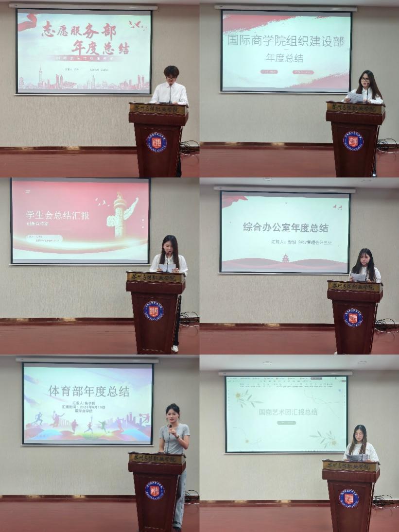大会在庄严的国歌声中拉开帷幕。随后,学生会各部门代表依次上台进行年度工作汇报。组织建设部重点介绍了智慧团建系统管理、信仰公开课和团员发展等工作成果;志愿服务部展示了全年开展的30余次志愿活动情况;创新宣传部通过精美的照片回顾了各类活动的宣传成果;体育部和艺术团则分别汇报了在各类赛事和文艺演出中取得的优异成绩。