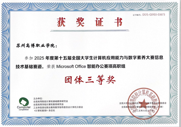 Microsoft Office 智能办公赛项 | 团体奖 | 苏州高博职业学院 | 三等奖 |