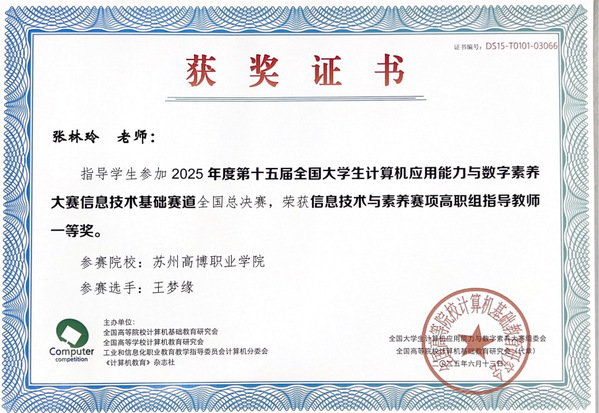 信息与软件学院孙涌院长表示,本次突破不仅是对 “以赛促学、以赛促教” 教学模式的肯定,更标志着学院计算机应用基础课程在教学中迈上新台阶。未来,学院将依托赛事成果深化课程改革,聚焦人工智能、数据可视化等前沿领域,进一步完善 “教学 — 实践 — 竞赛” 三位一体培养体系,为学生搭建更高水平的能力展示平台,助力培养适应数字经济发展的复合型技术技能人才。