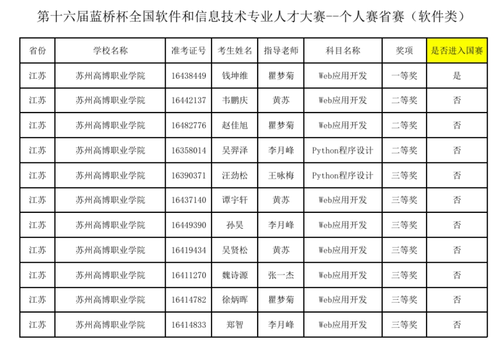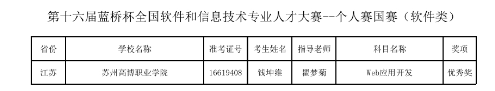 近日,第十六届“蓝桥杯”大赛各类赛项顺利结束。我校学子在本届比赛中表现优异,共获国家级优秀奖1项、省级一等奖1项,二等奖3项、三等奖7项,省级团队二等奖1项、三等奖1项,优秀奖1项,获奖总人数达19人,较去年增长73%,实现了参赛以来的历史性突破,彰显了我校在信息技术领域的卓越人才培养实力。