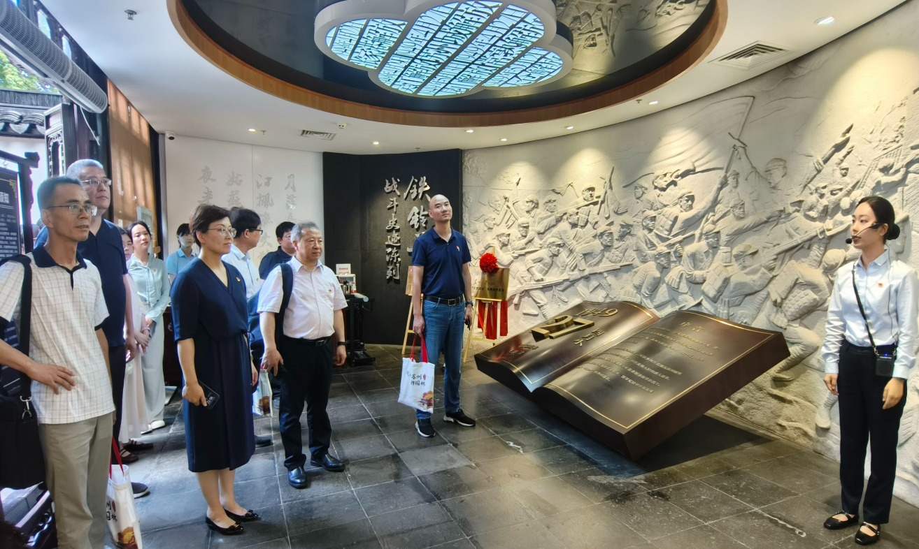 为深入贯彻落实习近平总书记“把思政小课堂同社会大课堂结合起来”重要指示精神,发挥苏州本土优质红色资源的教育价值,推动思政教育与优秀传统文化深度融合,6月27日下午,苏州高博职业学院人文社会科学学院党总支联合苏州大学马克思主义学院教师第五党支部与苏州虎丘山风景名胜区管理处党总支,在枫桥景区铁铃关战斗陈列馆联合举行“大思政课”实践教学基地揭牌仪式暨党建共建签约仪式。我校党委书记薛辉、苏州大学马克思主义学院党委书记茅海燕出席签约仪式并讲话。苏州虎丘山风景区管理处主任、党总支书记孙剑锋、苏州大学马克思主义学院教师第五党支部书记臧政等参加签约仪式,我校校长助理兼人文社会科学学院党总支书记吴建明、马克思主义学院院长吴歧范及两校思政教师、景区党员代表共50余人参加活动。