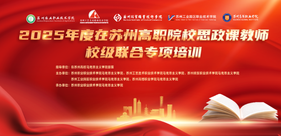 为认真贯彻教育部《普通高校思政课教师队伍建设规划(2025-2027)》通知要求,全面提升思政课教师理论素养与教学能力,6月29-30日,我校马克思主义学院与苏州农业职业技术学院马克思主义学院、苏州工艺美术职业技术学院马克思主义学院、苏州经贸职业技术学院马克思主义学院、苏州工业园区职业技术学院马克思主义学院联合主办了“2025年苏州高职院校思政课教师校级联合 专项培训”,来自上述五所高职院校的90余名思政教师齐聚苏州农业职业技术学院,通过听取专题讲座、现场教学展示、交流研讨等方式,深入贯彻理论与实践相结合的教学理念,着力增强教师的综合素养和教学能力。
