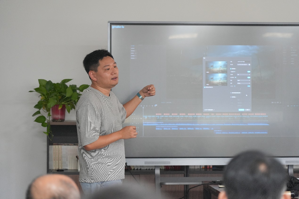 会议伊始,GMAKE视觉研究所创始人卢文军老师进行了题为“如何实质性将AI融入教学”的专题分享。卢老师结合自身深厚的研究与教学实践指出,AI融入教学的核心并非工具的表层应用,而是教学理念、流程与评价体系的系统性重构。他强调,教学重点应从传统的“技法执行”转向培养学生的“创意指导力”,并将“过程即作品”视为新的评价核心。卢老师以《垓下·别姬》主题视觉叙事创作为例,详细拆解了从文本生成、视觉开发、音频创作到后期整合的四阶段AIGC工作流。该案例生动展示了如何引导学生运用“提示词工艺”进行深度创作,并将史料研究与AI技术紧密结合,为在场教师提供了极具启发性与实践价值的教学范式,引发了与会者的广泛共鸣与深入思考。