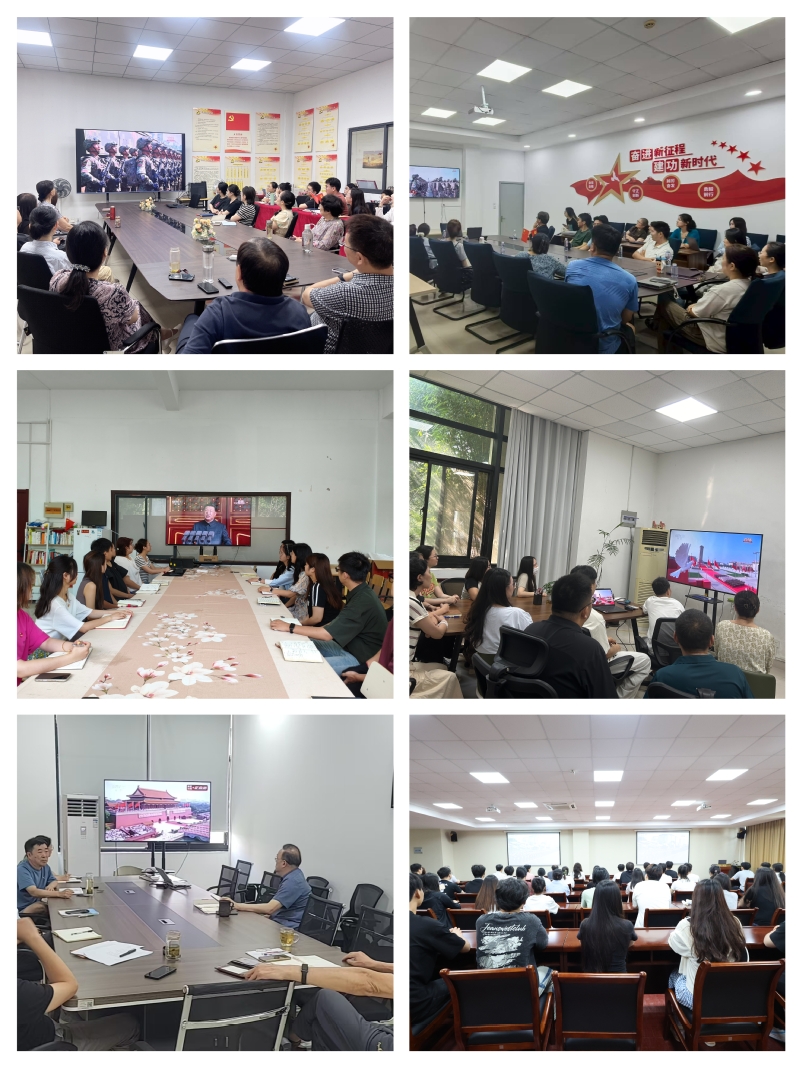 9月3日上午,为纪念中国人民抗日战争暨世界反法西斯战争胜利80周年,学校组织校领导、各二级学院领导、教师代表以及学生代表,在行政楼215会议室及各学院分会场共同观看盛大阅兵仪式。此次活动旨在让师生们铭记历史、缅怀先烈,传承和弘扬伟大的抗战精神,激发广大师生的爱国热情和民族自豪感。