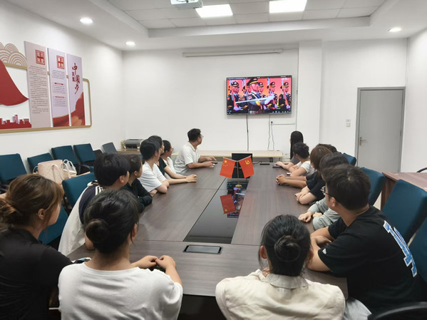 庄严盛大的阅兵仪式,是国家发展成就与新时代精神风貌的集中展现。空中护旗方阵护卫着党旗、国旗、军旗掠过天际,徒步方队步伐铿锵、意志如钢,装备方队中新型武器装备巍然列阵、熠熠生辉……这一幕幕震撼场景,不仅彰显了我国综合国力的跨越式提升和国防现代化的辉煌成就,更深深触动着每一位观看者的心弦。师生们神情专注、心潮澎湃,不时为受阅将士的飒爽英姿和尖端武器的威武雄壮所感染,强烈的民族自豪感与深沉的历史使命感在心中激荡升腾。