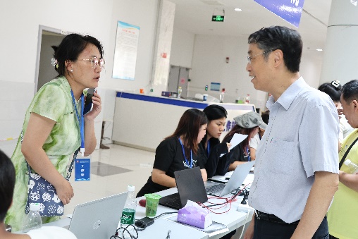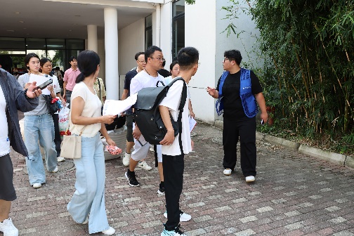 在迎新现场,学院志愿者团队成为传递温暖的重要力量。校门口,志愿者们主动上前接过新生手中的行李,热情地介绍校园特色地标,指引报到路线;报到大厅内,协助新生完成学费缴纳、信息注册等流程,帮助新生快速熟悉报到环节;新校区过桥处、学生宿舍安排处等室外区域,即便烈日当空,志愿者们依然坚守岗位,为新生及家长指引方向、解答疑问,用耐心与微笑驱散新生初入校园的陌生感,让温暖伴随新生入学全程。