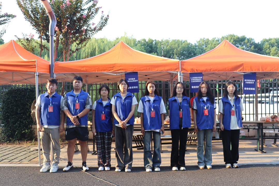 为保障新生及家长顺利抵达校园,学院接站组提前规划、精准发力。火车站组在赵志敏老师的带领下,早早驻守苏州火车站(北广场汽车站),搭建临时服务点,主动为新生及家长提供路线指引、行李搬运等服务,实时解答交通换乘、校园布局等疑问,确保每一位从火车站出发的新生都能安全、便捷地抵达学校。校内接站组在组长蔡婷老师的统筹下,于校园一号门设立接待点,志愿者们热情上前接过新生行李,引导新生及家长避开人流高峰路线,快速前往招生大厅办理报到手续,实现“校门到报到点”的无缝衔接。
