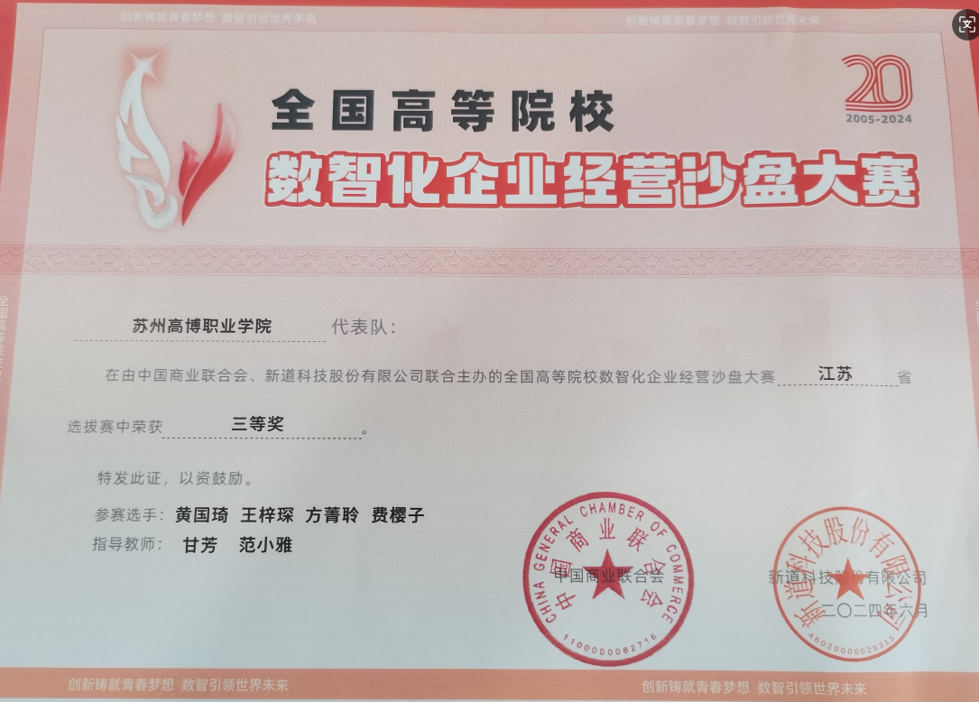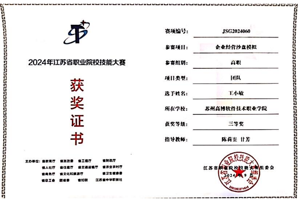 在2024年和2025年期间,甘老师指导的学生在两项重要的省级赛事中实现双突破。首先是在2024年省技能大赛获三等奖及省级协会技能大赛中再获三等奖,延续了团队的稳定性;更为关键的是,在2025年的省级技能大赛中,甘老师与学生们实现了历史性跨越——摘得省级一等奖桂冠!这一殊荣,凝聚了团队多年的汗水、智慧与不懈坚持,标志着甘老师与学生团队在省级技能竞赛的最高舞台上取得了令人瞩目的成就,实现了从“省赛参与者”到“省赛佼佼者”的华丽蜕变。