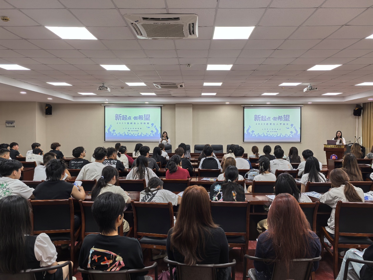 秋风送爽,丹桂飘香。为帮助我院2025级新生尽快适应大学生活、明确学习方向,9月11日,我院在行政楼215会议室举办新生开学第一课。学院副院长、党总支副书记赵雪飞、新生辅导员吴敬德担任主讲人,与新生共同开启大学成长新旅程。