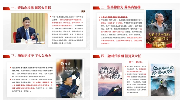 讲座围绕“铸信念根基树远大目标、塑品德修为养高尚情操、增知识才干下久久功夫、融时代浪潮担复兴大任”四个方面展开。在谈到理想信念时,薛书记引用马克思和习近平总书记的青春故事,勉励同学们树立正确价值取向,知行合一、脚踏实地,储备精神力量,将个人理想融入民族复兴伟业。在品德修为方面,他以“当代愚公”毛相林、“七一勋章”获得者张桂梅以及我校优秀校友郭泽鹏等先进典型为例,强调明辨是非、永葆奋斗精神和常怀感恩之心的重要性。针对知识才干提升,薛书记结合“火箭心脏焊接师”高凤林等大国工匠的事迹,鼓励同学们克服浮躁,珍惜学习时光,在持续学习、思考与实践中练就过硬本领。